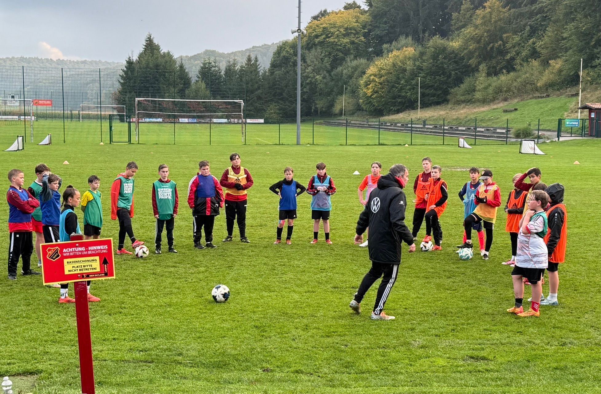 Mit großer Begeisterung nahmen 23 Spieler der D-Jugend am Demo-Training teil. Nach einer kurzen Aktivierung mit Ball, standen vor allem Passspiel, Dribblings und kleine Wettbewerbe auf dem Programm – stets unter den Grundsätzen Freude, Intensität und Wiederholung. Ein wichtiger Gedanke dabei: Jeder Trainer sollte sein Training im Vorfeld bewerten und sich fragen, ob es den Kindern auch wirklich Spaß machen wird.