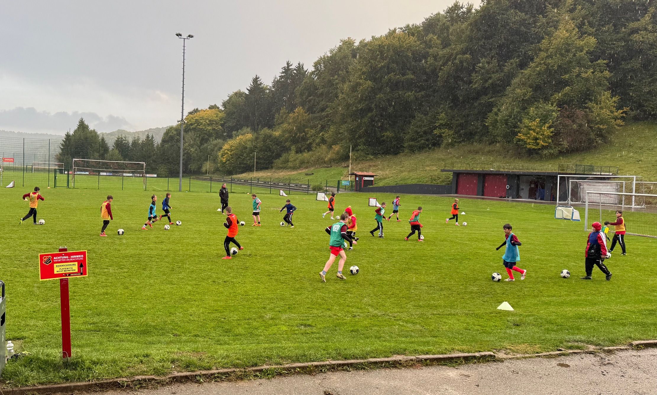 Im weiteren Verlauf der Einheit wurde viel gespielt – auf kleine Tore, ohne feste Torhüter, sodass jedes Kind in Aktion war. Auch Umbauten auf den Feldern waren nicht nötig, da das Training clever vorbereitet war. Ein zusätzlicher Hinweis der DFB-Trainer: Alle Spielfelder sollten mit einheitlichen Farben der Hütchen markiert sein, um Orientierung und Klarheit zu schaffen. Ein weiterer Tipp: Die Kinder zählen ihre Tore selbst, um Eigenverantwortung zu fördern.