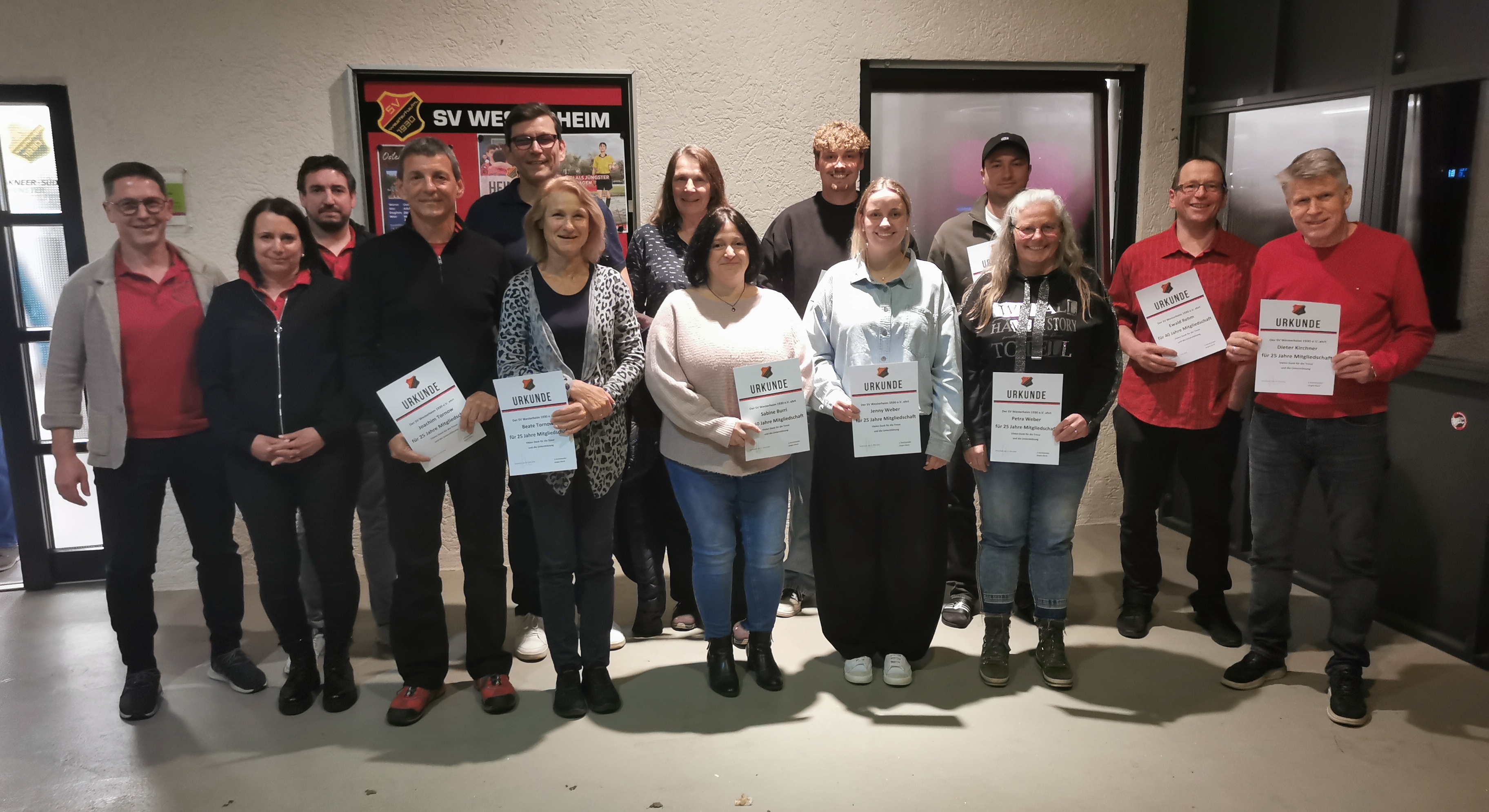 Am Freitag 27. März 2026 konnte Vorstand Jürgen Rieck 99 Vereinsmitglieder zur Mitgliederversammlung im frisch modernisierten Sportheim des SV Westerheim begrüßen. Nach dem Todengedenken durfte er 22 Mitglieder zu 25 Jahren und 12 Mitglieder zu 40 Jahren Vereinstreue mit Urkunde, Anstecknadel und kleinem Präsent ehren und gratulieren.