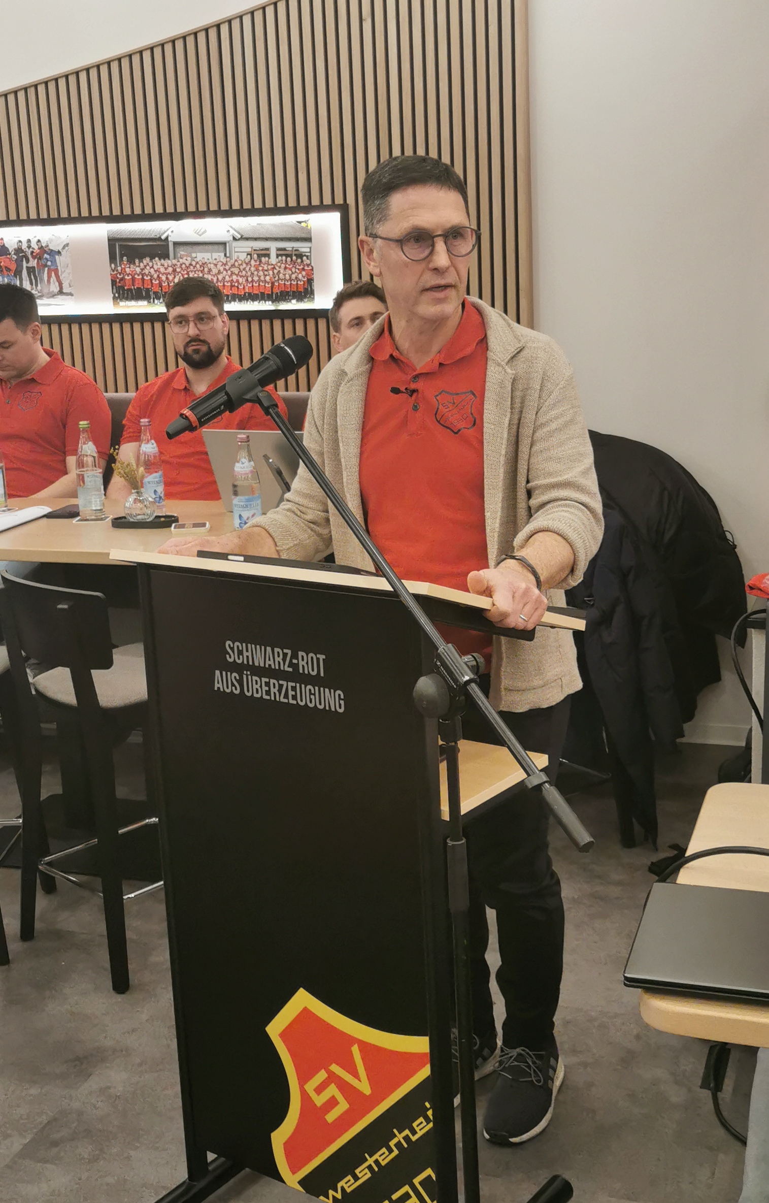 Jonas Esterl sprach als Sportkreispräsident ein Grußwort und erkannte eine ähnliche Mitglieder Entwicklung, die im Sportkreis um 2% auf 150.000 und beim SVW auf 1207 angewachsen ist. Bei der Aussprache wurden das Jubiläum 100 Jahre FC Westerheim, die Alb-Hallen Sanierung und die Terminüberschneidung mit der IGF angesprochen. Zum Abschluss der Veranstaltung um 23:20 Uhr bedankte sich Riek bei Firmen, allen Gönnern und Sponsoren, den Mitgliedern für die erbrachte Leistung.