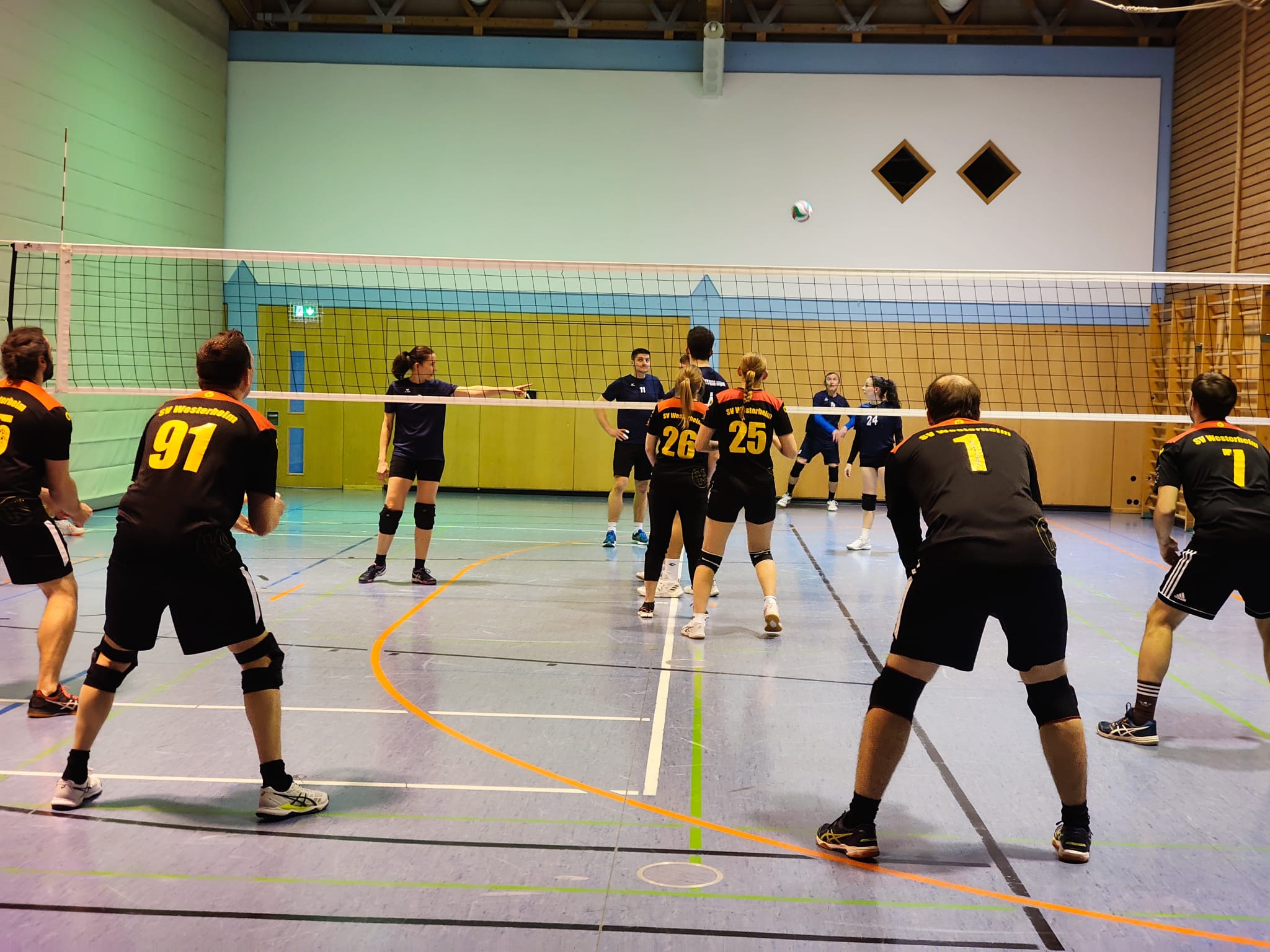 Satz 1 startet der TV sehr präsent und konzentriert. Dem SVW war die Nervosität in nahezu jeder Ballaktion anzumerken. So erspielte sich der Gast zwischenzeitlich eine 5 Punkte Führung. Nach einer schwarz-roten Auszeit war die Heimmannschaft etwas besser im Spiel, konnte jedoch keinen direkten Anschluss herstellen. Den herausgespielten Vorsprung gab der TV gegen schwächelnde Westerheimer nicht mehr her und beendete den Satz am Ende sehr deutlich mit 14:25.