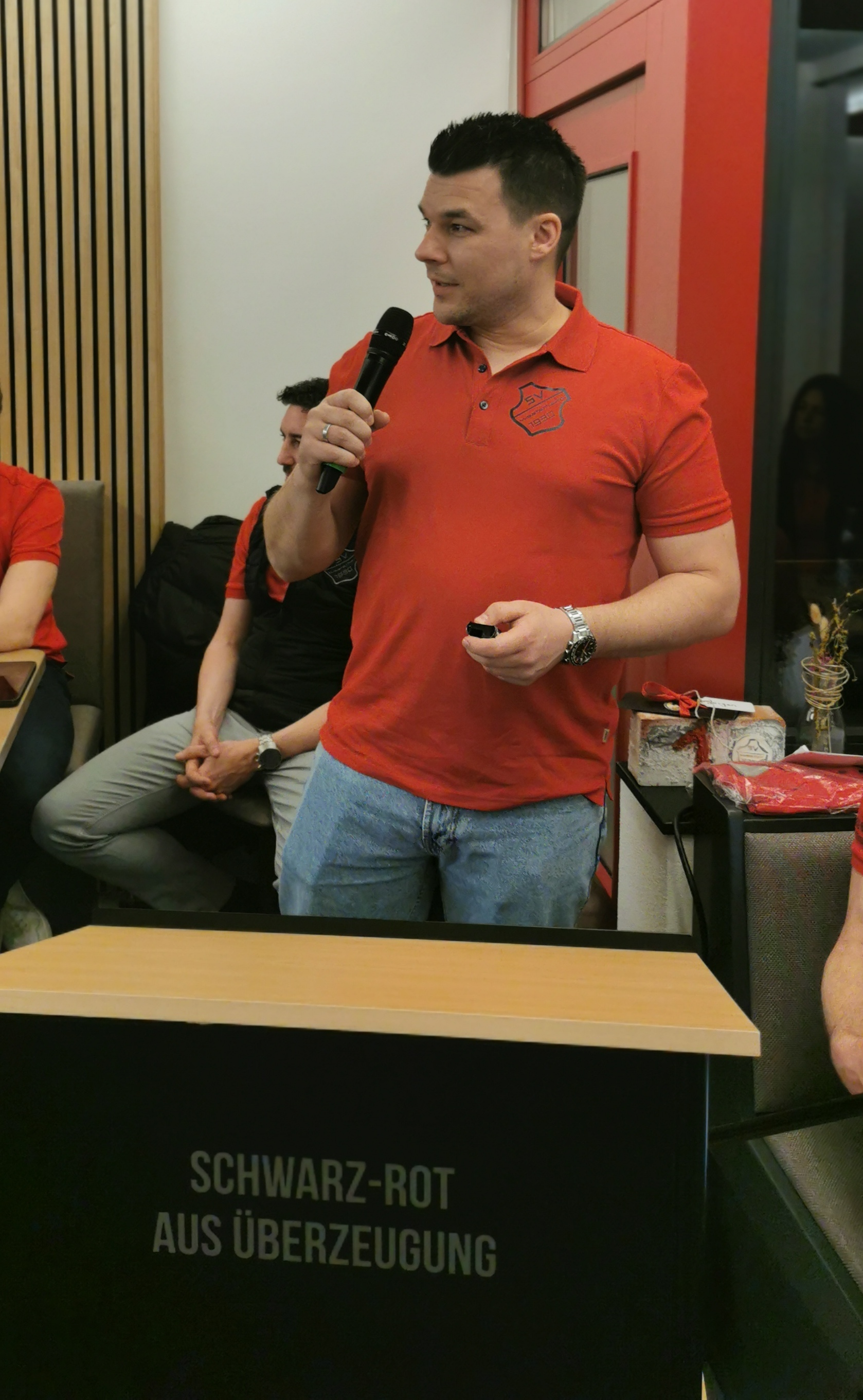 Jonas Esterl sprach als Sportkreispräsident ein Grußwort und erkannte eine ähnliche Mitglieder Entwicklung, die im Sportkreis um 2% auf 150.000 und beim SVW auf 1207 angewachsen ist. Bei der Aussprache wurden das Jubiläum 100 Jahre FC Westerheim, die Alb-Hallen Sanierung und die Terminüberschneidung mit der IGF angesprochen. Zum Abschluss der Veranstaltung um 23:20 Uhr bedankte sich Riek bei Firmen, allen Gönnern und Sponsoren, den Mitgliedern für die erbrachte Leistung.